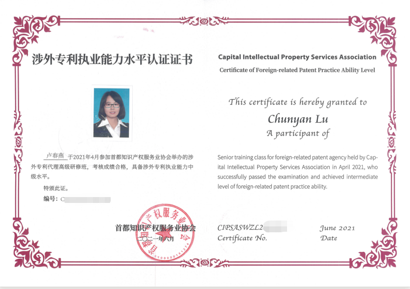 北京首批涉外专利代理执业证书认证代理师/合肥高新区人民调解员