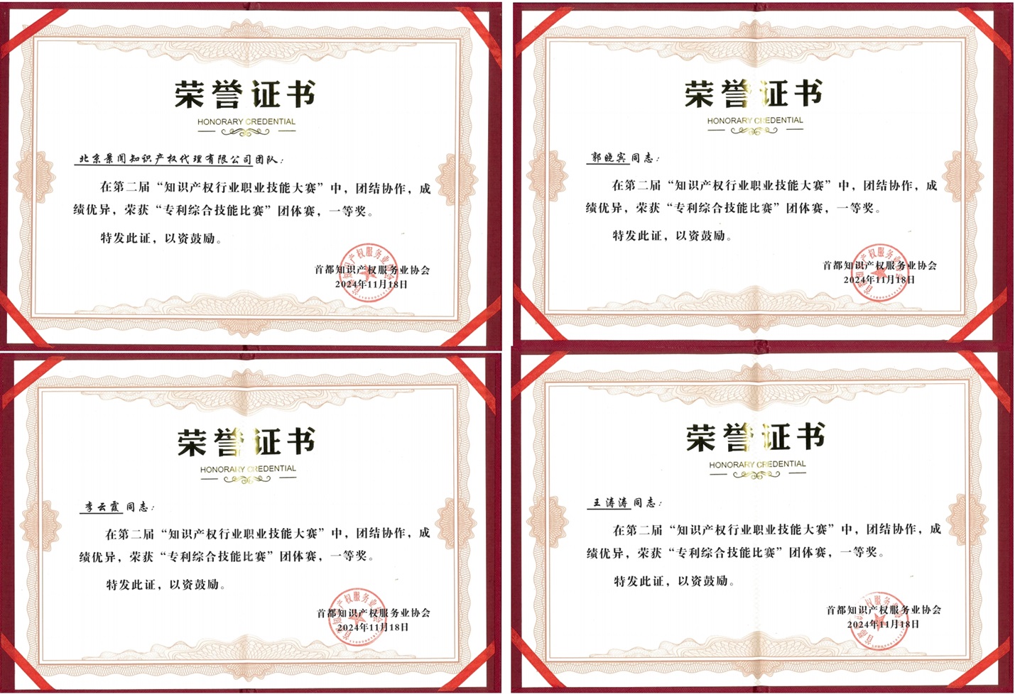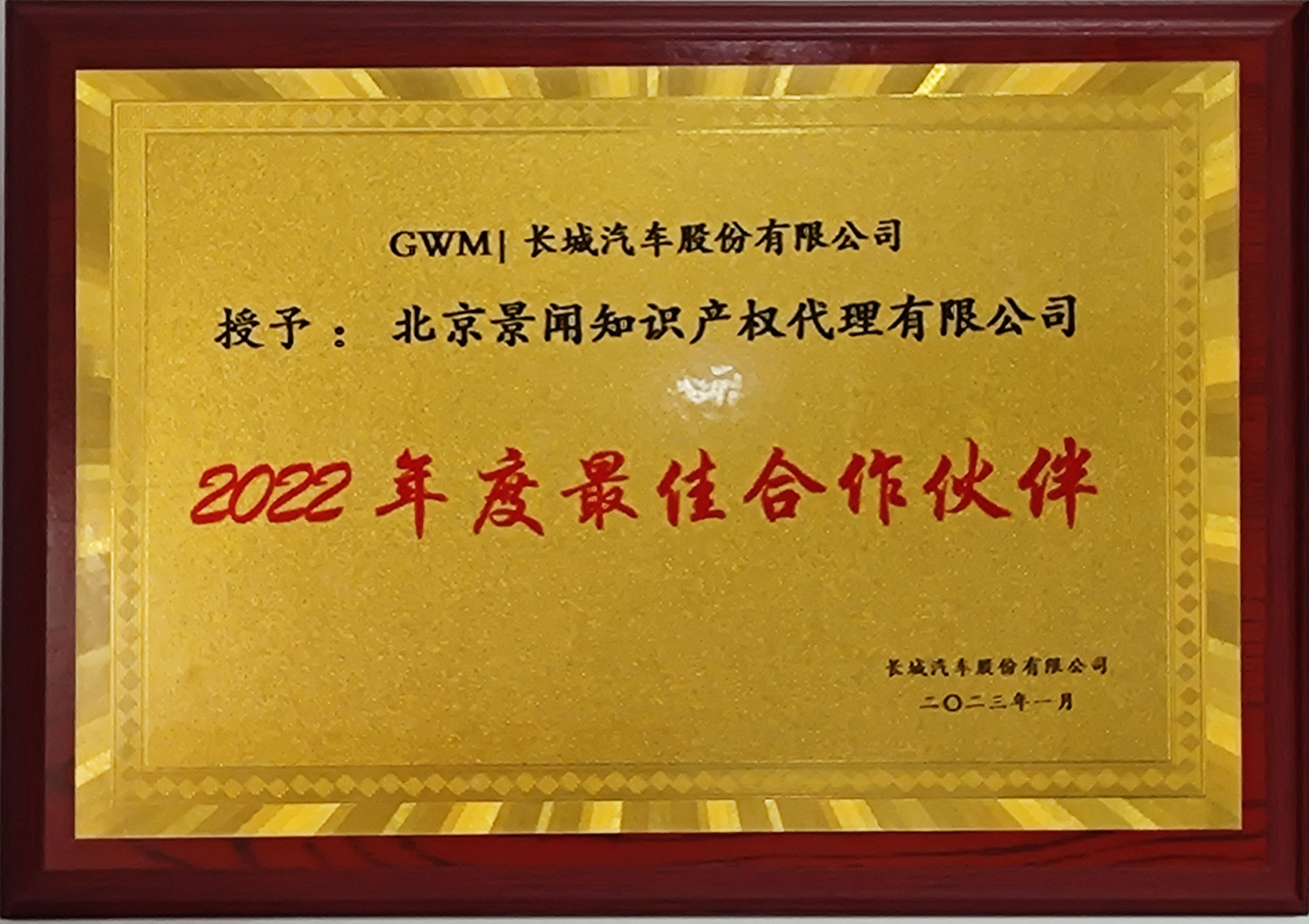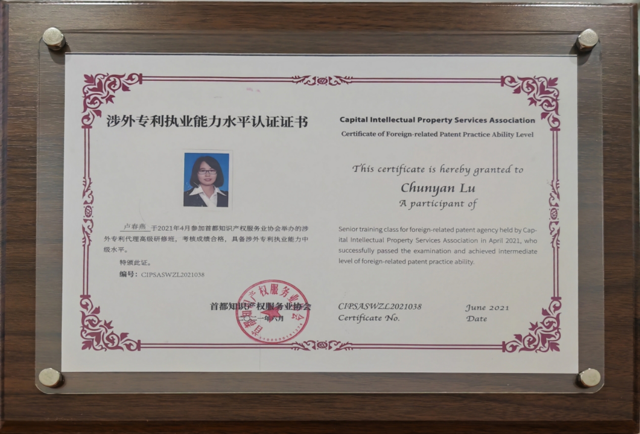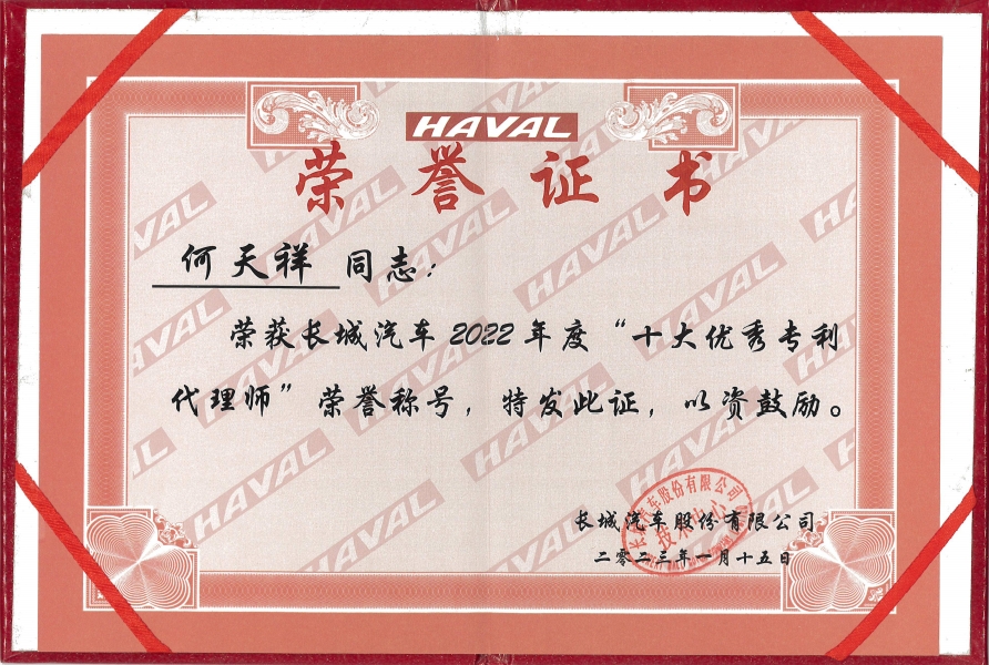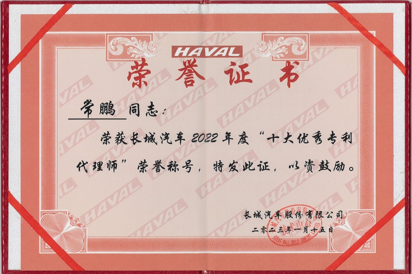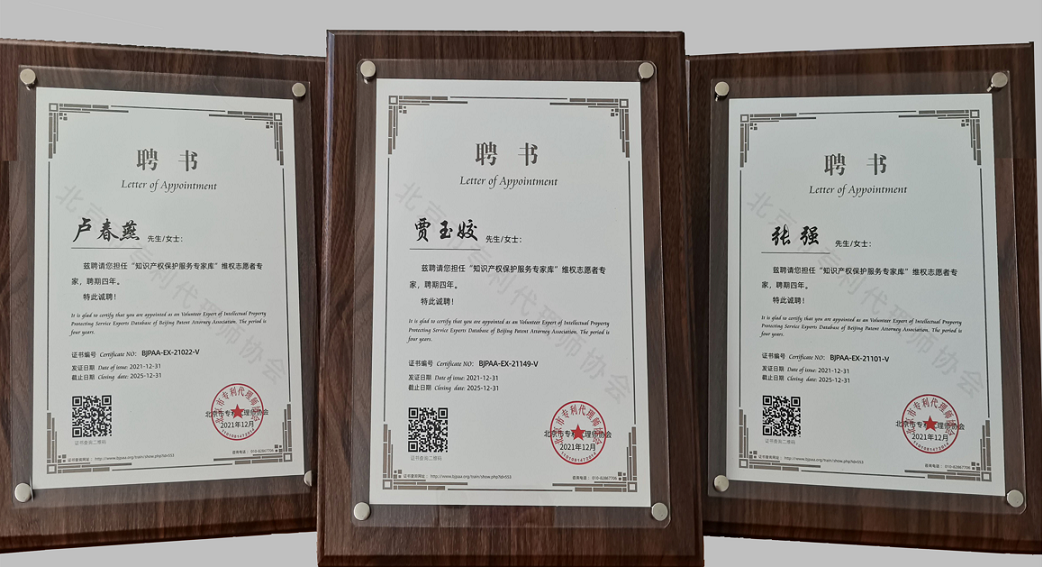 公司获评北京市专利代理师协会颁发的“2022年北京市AAAAA级专利代理机构”、“2021年北京市AAAA级专利代理机构”,并获得客户授予的“2022年度专利最佳合作伙伴”、“2020年度最佳专利维权机构”等荣誉。