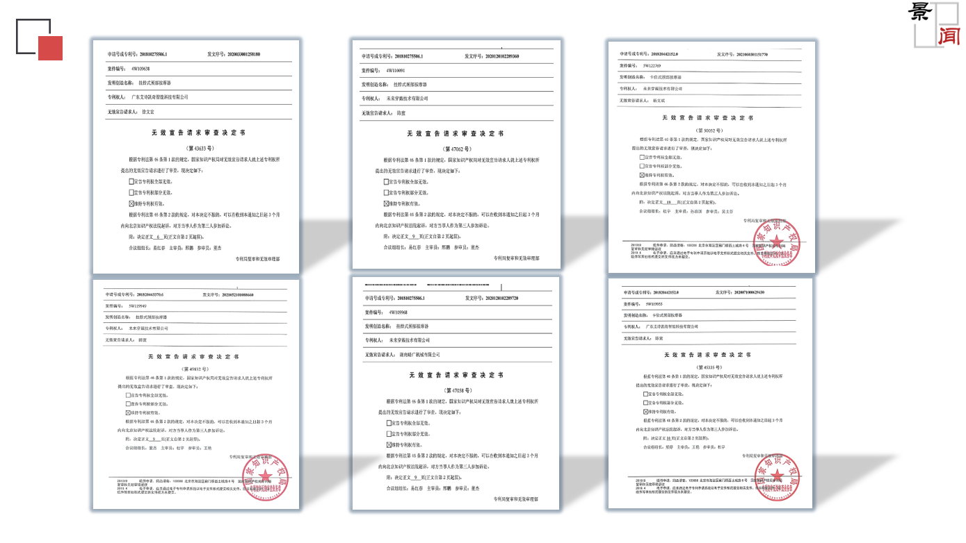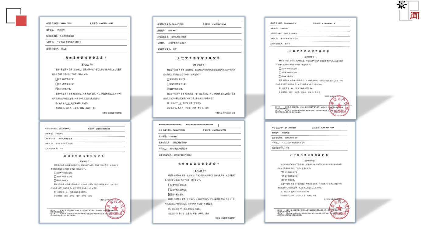 对国内眼部按摩仪龙头公司的涉诉专利的无效请求和行政诉讼一审; 涉诉基础发明案的五次无效,均维持有效; 涉诉基础新型案的两次无效,均维持有效; 三件线上维权用专利的无效,两件口审后请求人撤诉,一件维持有效。