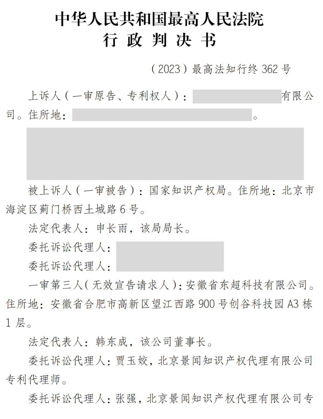 专利权人对该无效决定不服,向北京知识产权法院起诉。经审理,一审法庭认为被诉决定认定事实清楚,适用法律正确,驳回原告的诉讼请求。专利权人方对一审判决不服,上诉至最高人民法院,经审理查明,一审法院认定的事实基本属实,予以确认,维持原判。