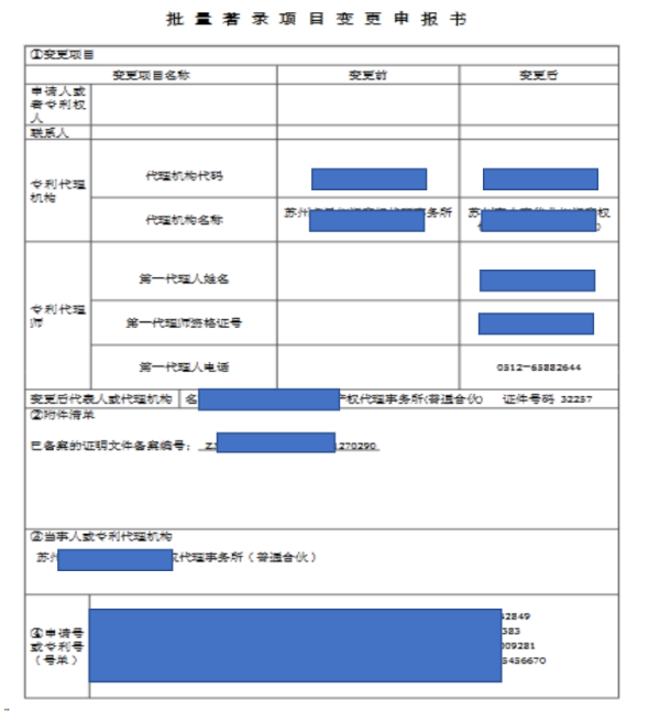 PS:除申请人或专利权人变更外,联系人信息变更、代理机构信息变更填写号单时需要区分出专利类型,确定每批次专利类型相同。